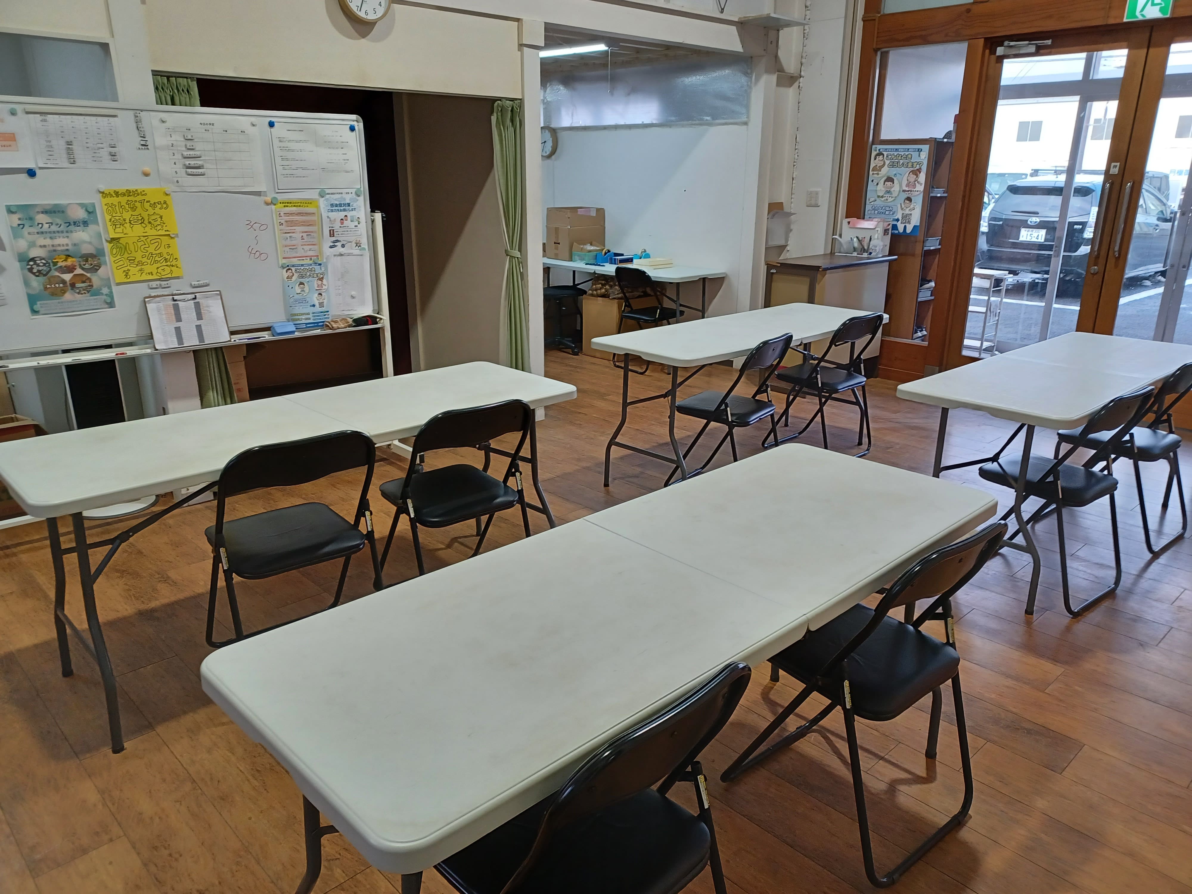 朝礼やミーティング、休憩や昼食を摂るなど、さまざまな目的で使用する部屋です。