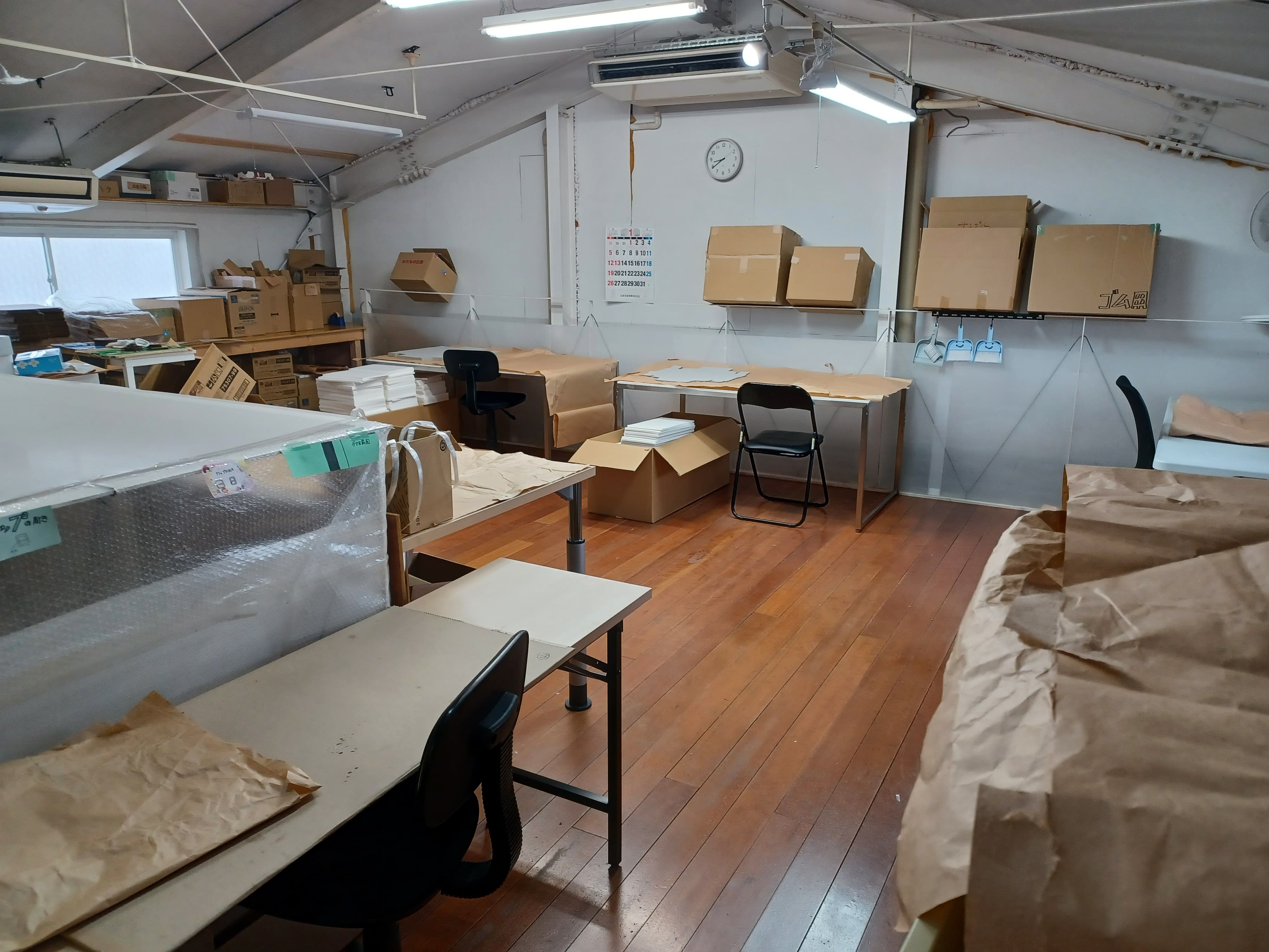 段ボール製品などを加工したり、タグのゴム通し・ファイルの留め具の作成など、 主に軽作業を中心に取組んでいただくスペースになっています。